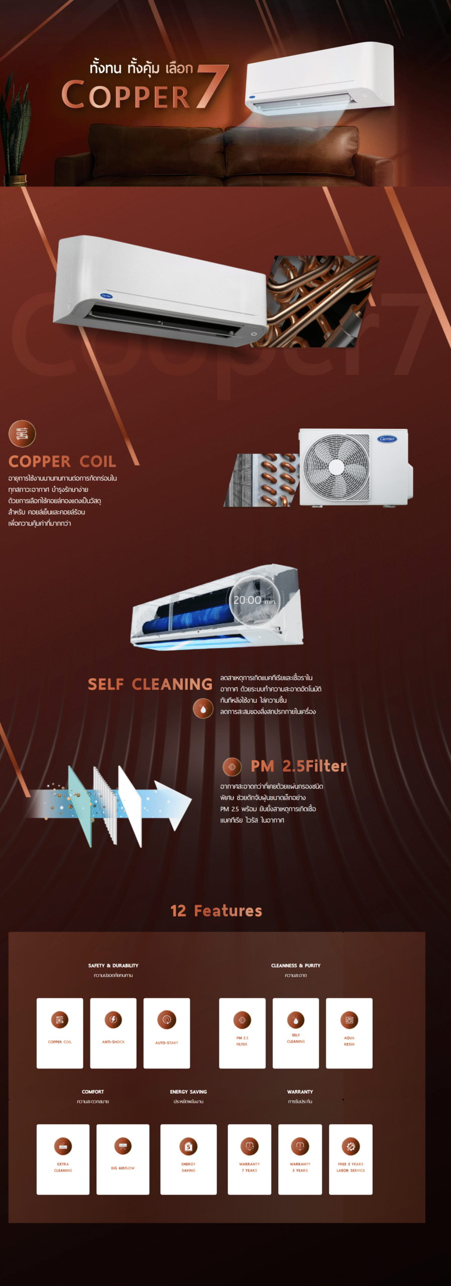 เครื่องปรับอากาศแคเรียร์ รุ่น Copper 7 - รายละเอียด