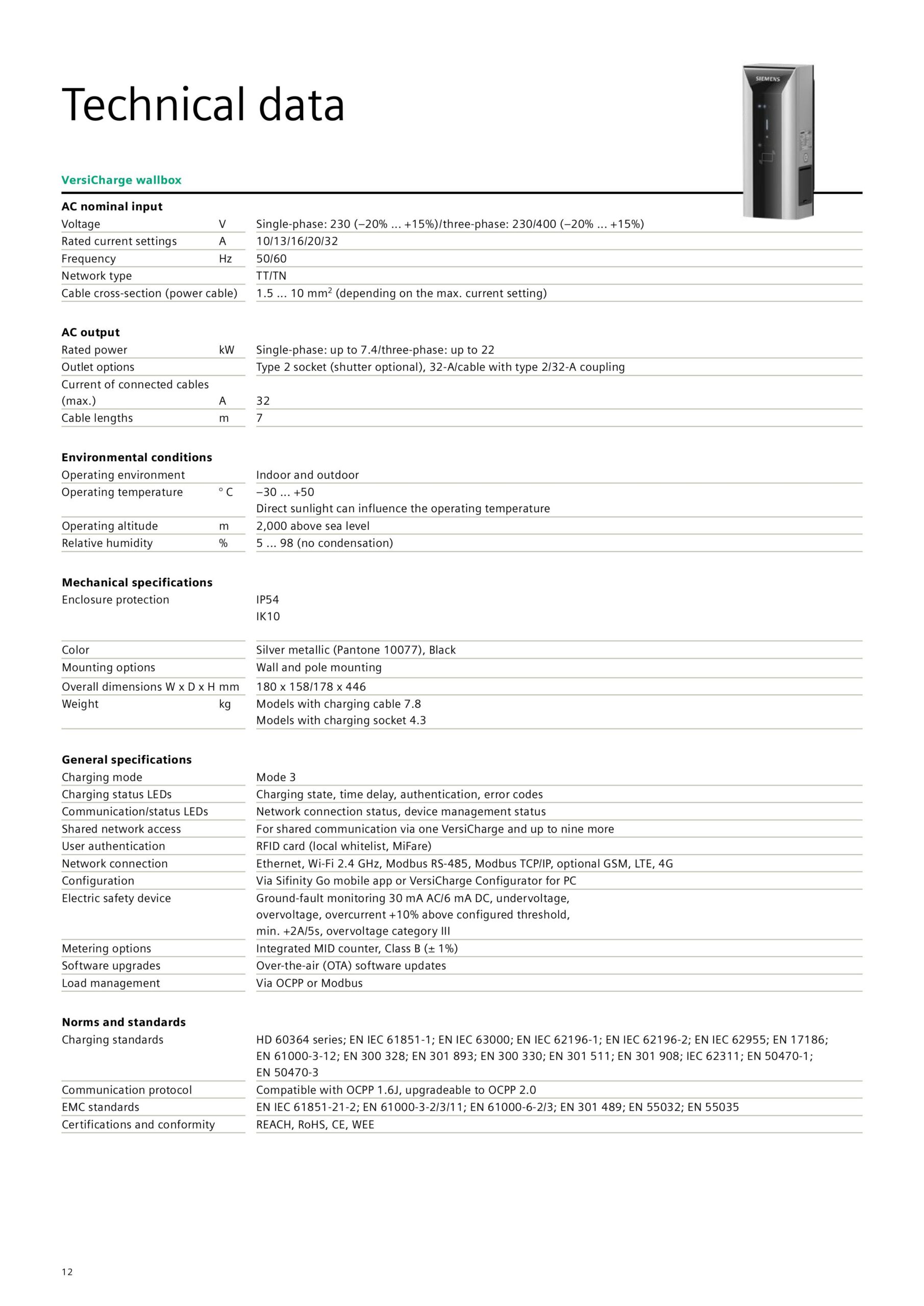 Siemens EV Charger VersiCharge Gen3 - รายละเอียด